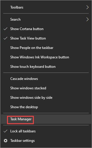 - بر روی نوار وظیفه خود راست کلیک کنید، سپس روی Task Manager کلیک کنید.