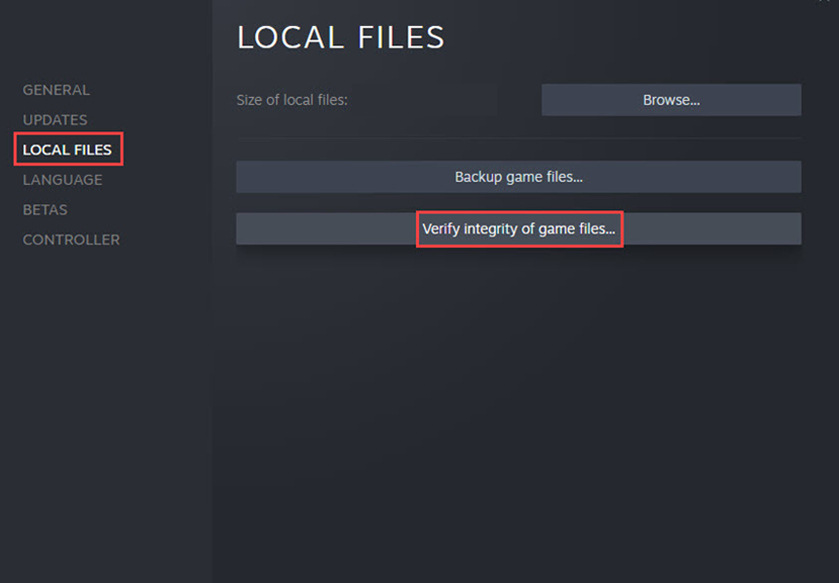 - در برگه LOCAL FILES ، روی تأیید صحت فایلهای بازی (Verify) کلیک کنید .